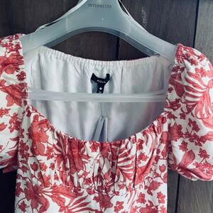 AQUA Puff Sleeve Mini Floral Lined Cotton Population Dress - Exclusive Size XS