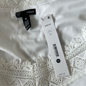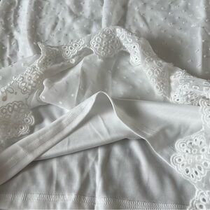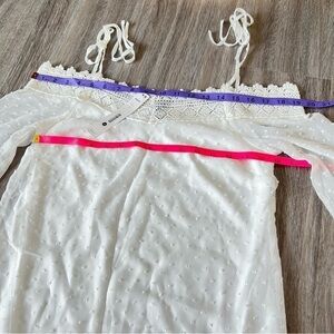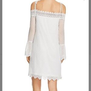 🆕 AQUA White Sheer Swiss Dot Long-Sleeve Off-Shoulder Dress in Ivory