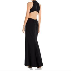 AQUA Women's Black Open Back Halter Formal Evening Dress