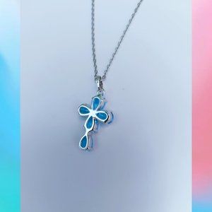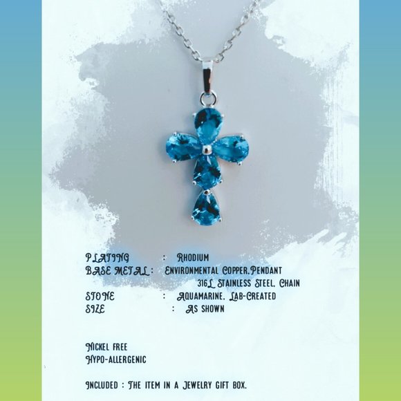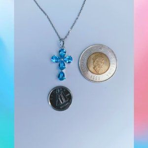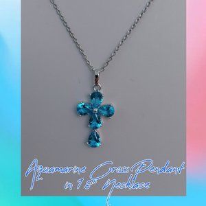 AQUAMARINE CROSS PENDANT NECKLACE BRAND NEW