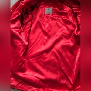Gorgeous Aquascutum red virgin wool coat with statement bronze buttons. The lining is a vibrant silky red.