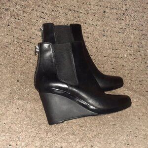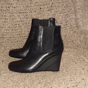 AQUATALIA-Nitza-Black Leather Chelsea Wedge Booties-Back Zip-Sz 8.5-Near Mint
