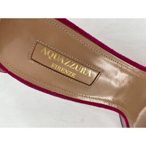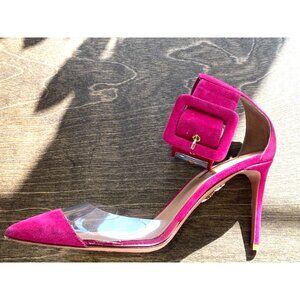 AQUAZZURA Pink Suede Nude Clear PVC Heels Ankle Wrap Shoes Pumps Heels Sz 38.5