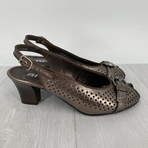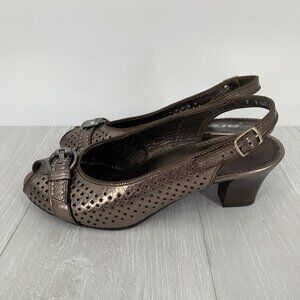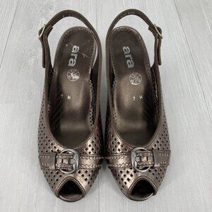 ARA Valentina Pump Heel Womens 9.5 Brown Leather Slingback Buckle Studded Fall