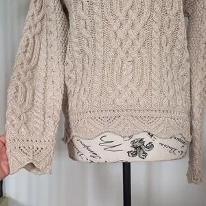 ARAN MOR | Women's Cream/Pink Streedagh Scallop Lace Stich Merino Wool Sweater
