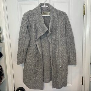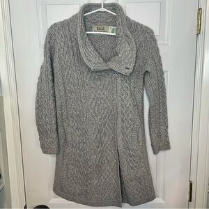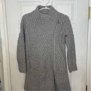 Aran Sweater Market Ireland 100% Merino Wool Grey Zip Cardigan Small