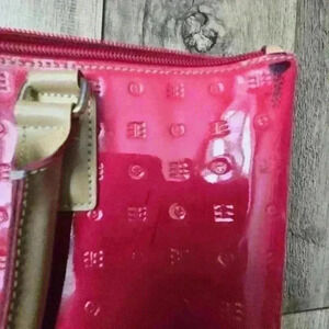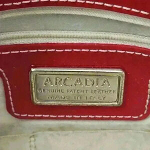 Arcadia red purse, has some marks please see pictures. a little brown inside.