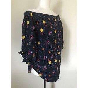 ARITIZIA BABATON Malik Blouse Off the Shoulder Top Size XXS Indigo Blue Floral