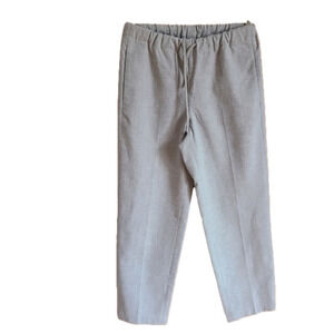 These ones feel soft. These are mid-rise trousers with an elastic waist, inseam pockets and softly creased legs. They're cut from soft flannel twill made with recycled materials and LENZING™ ECOVERO™ Viscose — wood-based fibres sourced from responsibly managed forests and produced through an environmentally low-impact process.