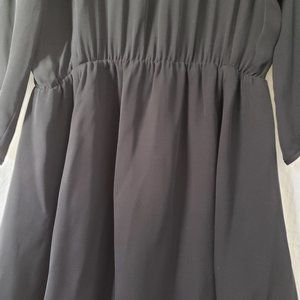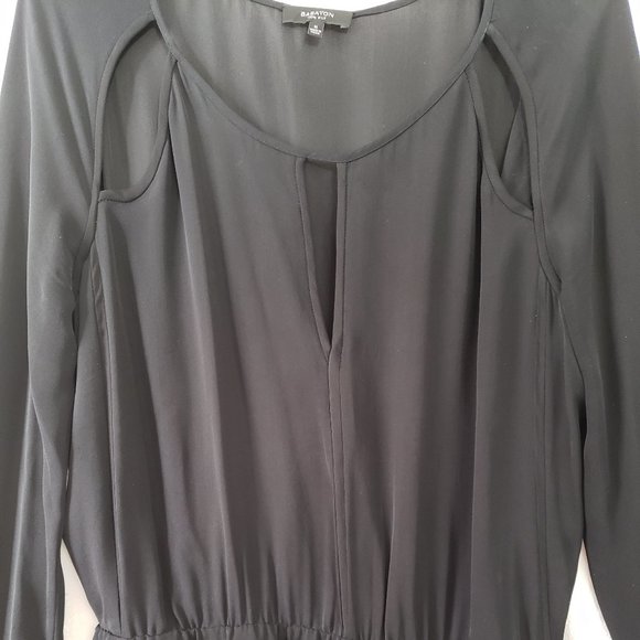 ARITZIA BABATON Black Semi-Sheer Bateau Neckline Quarter Sleeves Cut Out Keyhole Flowy Silk Chiffon Mini Dress M Medium Dark Goth Witch Boho