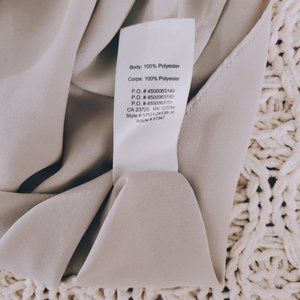 An elegant yet super pretty mesh lined v-neck cami top by Babaton. Featuring a beautiful light taupe tone, a flowy bottom with double lining, adjustable thin straps, and lightweight.