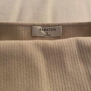 Yours. This is a fully fashioned backless mini dress with a halter neckline. It's made with Sculpt Knit — Babaton’s signature figure-smoothing yarn. The perfect amount of stretch hugs in the right places to shape and sculpt your form. It’s constructed using an Ottoman stitch with close distinct ribs for a structured and textural feel.