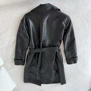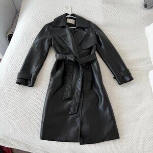 ARITZIA BABATON TABLOID VEGAN LEATHER BLACK DOUBLE BREASTED TRENCH COAT XXS