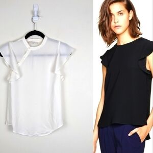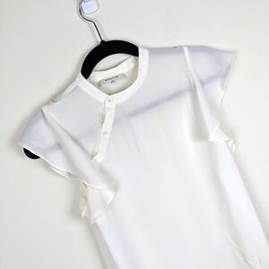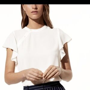 Lightweight classic blouse, short sleeve, delicate ruffle by Babaton