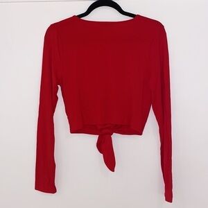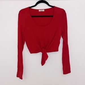 ARITZIA Babaton Jeronimo Long sleeves cropped top tied knot Red Size M