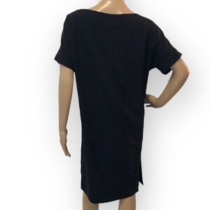 Aritzia Babaton black round neck short sleeves pockets slit mini tunic dress size XXS