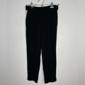 Content: 82% triacetate, 18% polyester. Cropped, slim fit dress pant is highly versatile and universally flattering. Black and cream stripes on the side.
