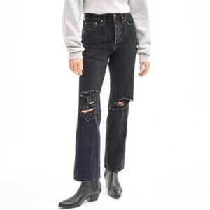 ARITZIA DENIM FORUM Joni Hi-Rise Loose Jean Black Wash Distress Rips 25x29L