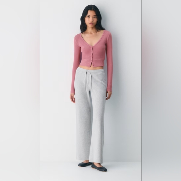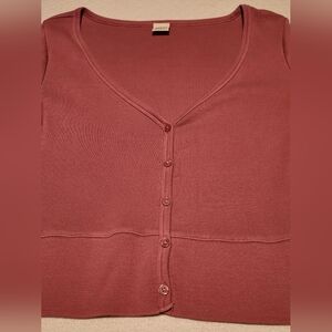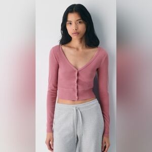 Like new condition ARITZIA HomeStretch™ Rib V-Neck Waist Button-Up in "vintage frozen berry" colour.