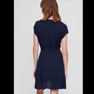 ARITZIA SUNDAY BEST Savoy Ruffle Wrap Mini Flowy Navy Blue Dress Size 0