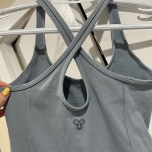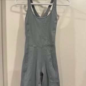 Baby blue romper with crossed back straps and scoop neck, in EUC. Pls note, first photo is for fit reference only (different colour)