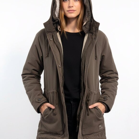 ARITZIA TNA Griffith Parka Jacket Women(XS) Olive Green Sherpa Lined Winter Coat