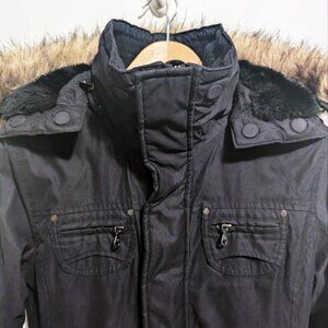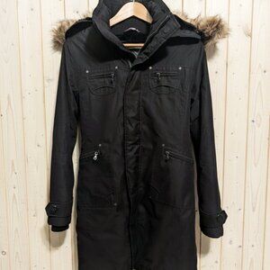 ARITZIA TNA Verbier Parka Black Long Coat Faux Fur Hood Women's (S) Winter