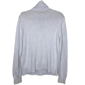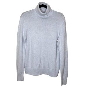This is a turtleneck sweater with a fold-over collar. It’s knit with a soft cotton blend.