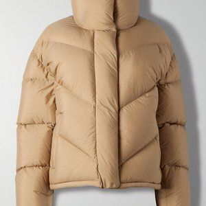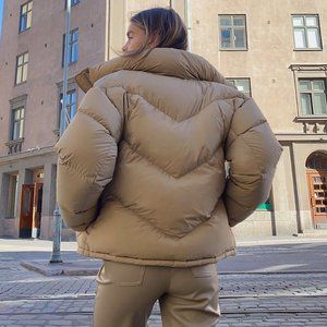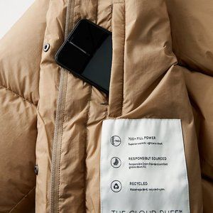 Engineered to deliver warmth to -20°C / -4°F, this cloud-soft puffer has a cropped, boxy fit with a tall funnel neck and chevron quilting. 700-fill-power goose down provides ultra-warm, lightweight insulation. It’s made with recycled nylon taffeta and has a Durable Water Repellent (DWR) finish to keep you protected and dry.