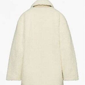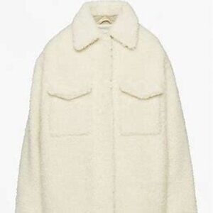This is a fully lined, insulated shirt jacket with patch pockets and dropped shoulders. It's made from cozy sherpa fleece with a warm and textural feel.
