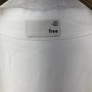 ARITZIA WILFRED FREE Tie Up Knot Crop Top White Size XXSFlat-lay Measurements:Pit to Pit: 15'' Waist: 15'' Length: 17'' Condition: Pre-Owned Like New Get ready to turn heads with this stunning ARITZIA WILFRED FREE Tie Up Knot Crop Top. Its crisp white color and flattering tie-up design make it a versatile and stylish piece that will elevate any outfit. Plus, its pre-owned condition means you can enjoy it like new at a fraction of the price. Add it to your wardrobe and feel confident and chic wherever you go!