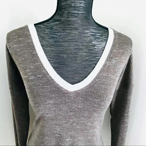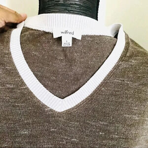ARITZIA WILFRED LONG TAUPE V NECK SWEATER SIZE SMALL