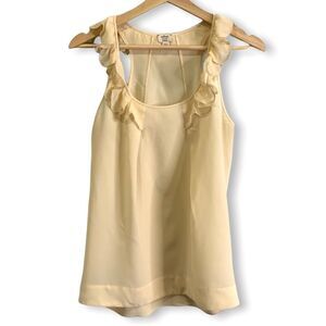 ARITZIA Wilfred 100% Silk Ruffle Neck Pale Yellow Sleeveless Top Sz XS