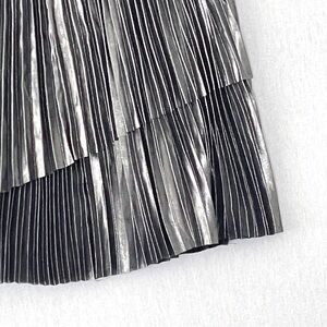This A-Line silhouette skirt is layered with an asymmetrical tier, has a metallic finish and features a zip closure. Very pretty on and great for any special occasions.