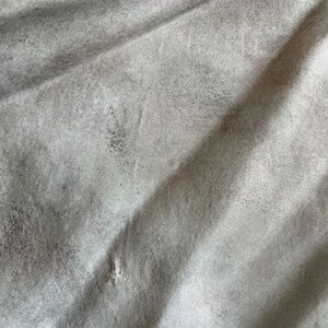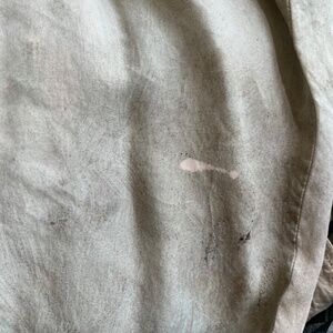 In GUC. Two bleach marks and a hole that's been patched on the leg. IMO you can't really tell when the set is on, but the price reflects these signs of wear.