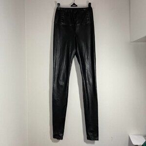 These are high-rise leggings with a wide waistband for a smooth silhouette. They're made with our Premium Vegan Leather from Japan, crafted for superior shape retention, easy care and an authentic look and feel.
