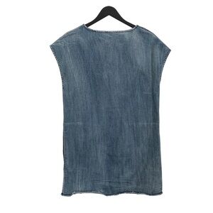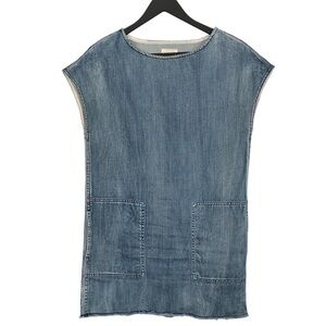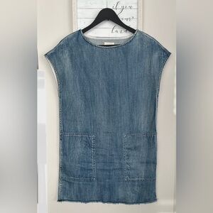 Aritzia Nori Dress Blue Cotton Denim with frayed Raw Hems & top stitched Pockets. Wilfred Free Straight Shift Nori Dress. Oversized fit creates the Cap sleeves. Will also fit Small giving a more fitted look. Above the knees hemline.