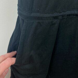 Wilfred Free Black Romper from Aritzia in Women's Size XS. Rope tie waist. Round neck. Sleeveless. Article # 55203. 60% cotton and 40% modal. Machine washable. Very good pre-loved condition. No visible flaws.