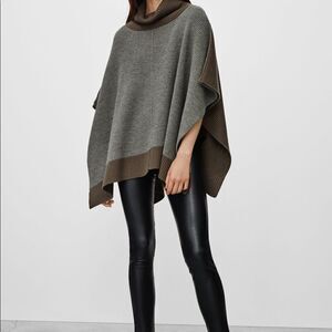 ARITZIA Wilfred Free Welsh Poncho Sweater-CREAM/GREY