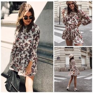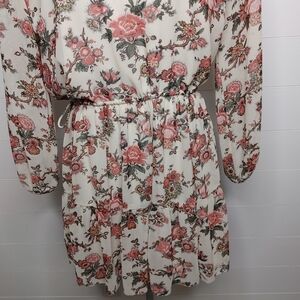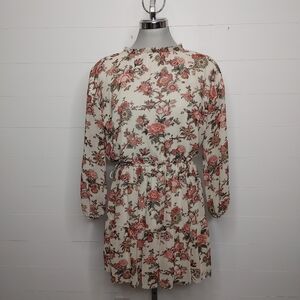 Gorgeous blogger fave floral print dress with sheer sleeves. Partially lined. Adjustable drawstring waist. In excellent condition. Off white and pink.