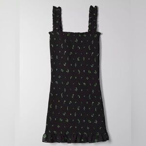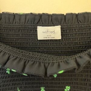 ARITZIA Wilfred Luella Smocked Strap Dress in Black and Leaf Print