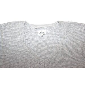 Stay cozy and stylish with this Wilfred Women's Silk/Cotton/Cashmere Blend Knit Top in a light gray shade. The waffle-knit pattern, V-neckline, and long sleeves make it a versatile piece for travel, casual outings, school, workwear, and even business settings. The relaxed fit and breathable fabric ensure comfort all year round, while the asymmetrical hemline adds a modern touch to this classic pullover sweater. Hand wash only to maintain the quality of the 55% silk, 40% cotton, 5% cashmere material blend. Perfect for any season, this top is a must-have addition to your wardrobe.