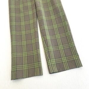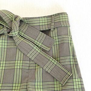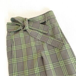 Simple, flattering and comfy. These are high-waisted, straight-leg pants with a removable self-tie belt and welt pockets. This version is made with a yarn-dyed check fabric.