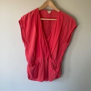 Aritzia Wilfred silk v-neck pink blouse. Size small. A couple marks on the stop. Pictured a bit of a stain/mark in the v-neck area. Lightweight top.