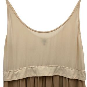 This is a sleeveless 2 Tone Colour maxi dress with a scoop neckline and gathering around the waist. It's made from drapey fabric with a subtle pebbled texture. 100% Silk. XXS