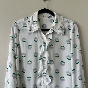 ARITZIA-“SUNDAY Best” CottageCore Floral Ruffle Front Ling Sleeve Blouse