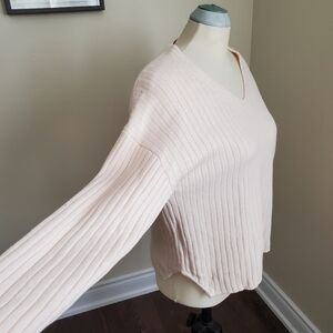 ARITZIA-WILFRED Free 100% Wool V-Neck Cream Knit Sweater Size Small