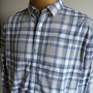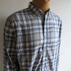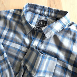 Beautiful Armani Exchange Shirt. Excellent quality. Plaid pattern, grey blue and white.