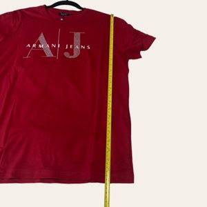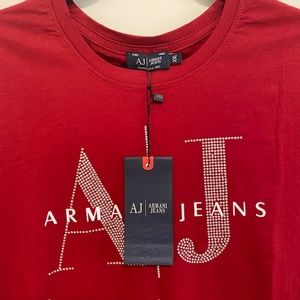 Armani Jeans T-shirt, wine color, short sleeves, rhinestones AJ letters on front.