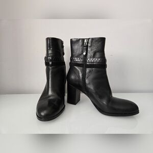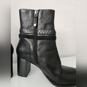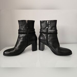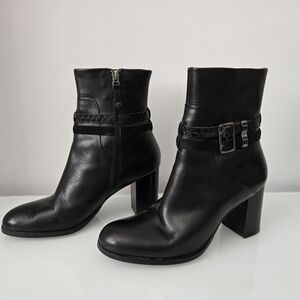 ARNOLD CHURGIN black moto calf heeled leather boots with buckle. Size 39 (8-8.5)
